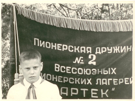 После окончания начальной школы приняли учиться в пятый класс в семилетнюю школу, преобразованную в 1961 году в восьмилетнюю школу. Восьмой класс закончил в 1962 году. В 1959 году был принят в пионеры, стал членом Всесоюзной пионерской организации имени В.И. Ленина. В 1961 году поступил в комсомол – Всесоюзный Ленинский Коммунистический Союз Молодежи. В восьмилетней школе нас учили много замечательных учителей. Назову тех из них, кто оказал значительное влияние на меня во время обучения. Это, прежде всего, - Н.Г. Сухарь. Она работала директором школы и одновременно преподавала математику. Н.Г. Сухарь – обаятельная женщина с тонким чувством юмора. По ее инициативе, меня, как отличника учебы, послали отдыхать в мае 1960 года во Всесоюзный пионерский лагерь “Артек” в Крым.