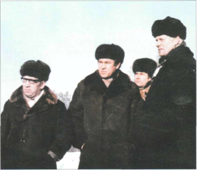 Митинг на Уренгое. В. С. Черномырдин, Н. И. Миронов, Н. И. Курбатов, Е. Н. Алтунин. 1983 г. |
