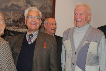 Участники встречи делились воспоминаниями о том героическом времени. Свои стихи, посвященные знаменательной дате, прочитала член нашего землячества Лидия Шмаль. Был показан документальный фильм об освоении нефтегазового комплекса, звучали песни о Севере из сборника «Вертолет над буровой». Из Тюмени специально на встречу ветеранов было доставлено большое красочное панно, рассказывающее о комсомольских стройках Западной Сибири. – Его от нашей делегации вместе с подшивкой газет Тюменского областного комсомольского строительного отряда Г.И.Шмаль подарил музею. По окончании встречи собравшиеся вспоминали вместе импровизированным хором комсомольские песни своей юности на фуршете, который организовал наш земляк Сергей Барышников.