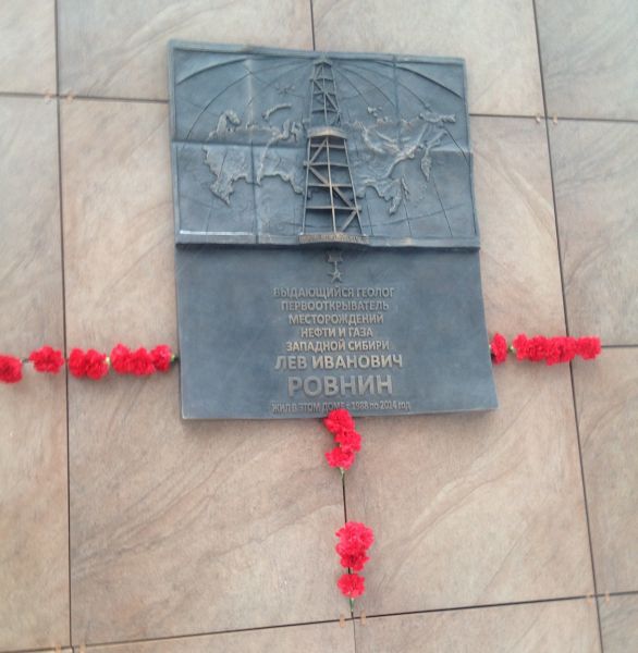 Доска установлена на средства ПАО «НОВАТЭК» по адресу: ул. Достоевского д.1/21, строение 1, где долгие годы жил Министр геологии РСФСР.