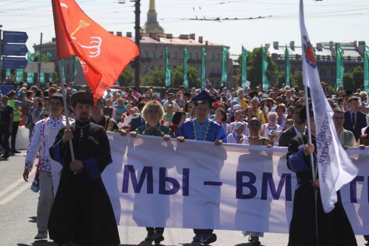 Более 300 представителей национальных объединений и землячеств в национальных костюмах под лозунгом «Мы вместе. Мы Петербург» прошли торжественным шествием от площади Островского по Невскому проспекту до Стрелки Васильевского острова. По приглашению Санкт-Петербургского Дома национальностей в шествии приняли участие студенты молодежного землячества «Ямал-Потомкам!», представляя коренные малочисленные народы округа. Праздничное шествие украсила колонна барабанщиц, духовые оркестры, цирковые артисты и цирковые слоны.