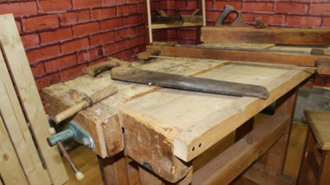 Часть выставки, которая будет работать до 15 декабря 2018г., оформлена в виде рабочей мастерской с верстаком, где можно научиться пользоваться столярными инструментами и сделать памятное фото.