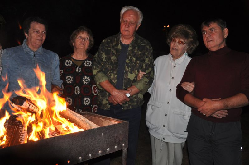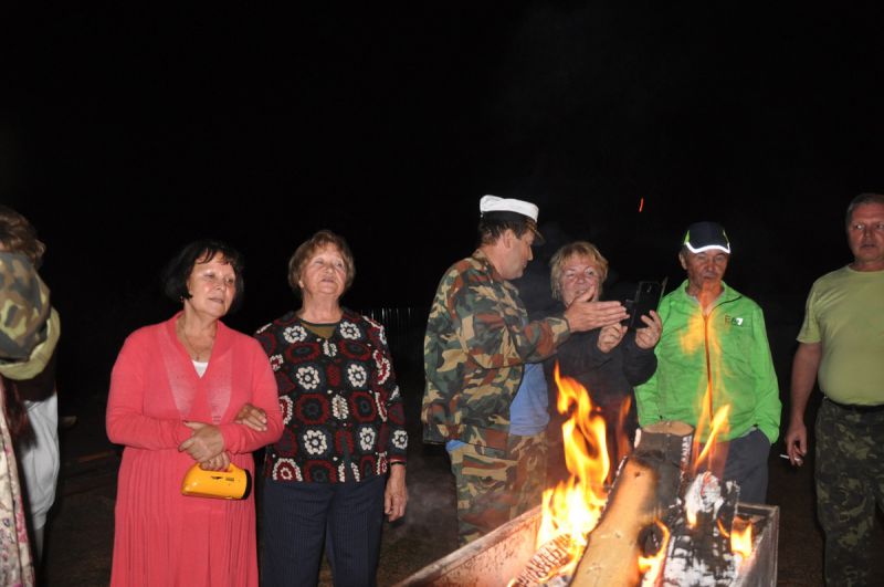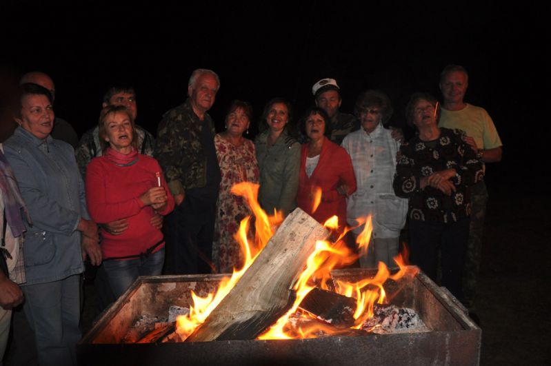 И даже тени усталости или раздражения на лицах вполне взрослых моих земляков я не заметил. Шутки, смех и оживлённые разговоры не прекращались ни на минуту. После завтрака вновь все «перекочевали» на берег пруда и вновь занялись активным отдыхом по призванию и интересам. Рыбаки, поколдовав над приманкой и нацепив на крючок вертлявого червя, забрасывали донки и удочки подальше от берега, костяк «народного» хора приступил к распевам, а «бессменный» фотокорреспондент Анатолий Петрович Ефимов ловко и настойчиво снимал важные моменты происходящего.