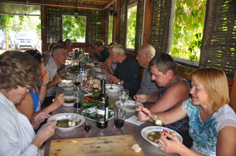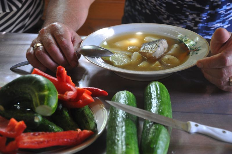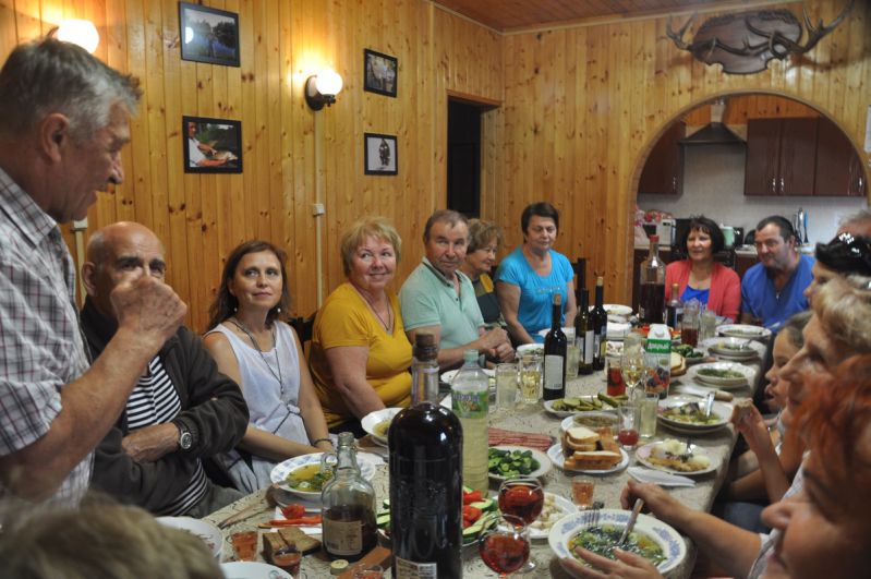 Шло время, наступила пора расселяться по номерам гостиницы, а мы никак наговориться не можем. И только после того, как была подана команда садиться за длинный деревянный стол, на котором стояли кастрюли с ароматной ухой и варёной картошкой, тарелки с жареной рыбой, овощами и зеленью, бурная встреча стала потихонечку входить в спокойное русло. Но ненадолго.