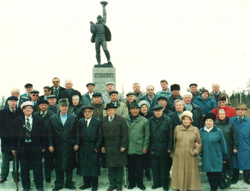 | Ветераны-нефтяники у памятника «Покорителям Самотлора», 2002г. |