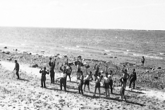| Общая зарядка на море. |