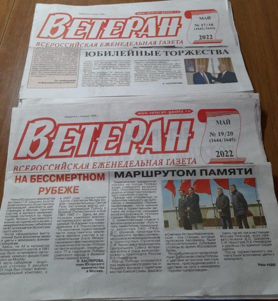 С вниманием к нашему землячеству относится и всероссийская газета "Ветеран" (главный редактор В.Н. Овсянников, ответственный секретарь В.А. Прокопенко).