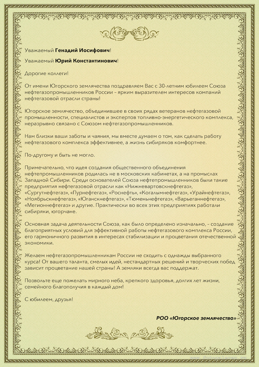 Все прошедшие годы показали, что идеология и задачи общественного объединения нефтяников и газовиков были сформулированы своевременно и правильно. И прошедшие 14 съездов Союза нефтегазопромыленников России - тому яркое свидетельство. Без Союза, четко и профессионально выработанных на наших встречах рекомендаций и предложений, без общественной поддержки невозможно было бы провести реформы, задать стратегические направления деятельности нефтегазового комплекса на короткую и длительную перспективы.