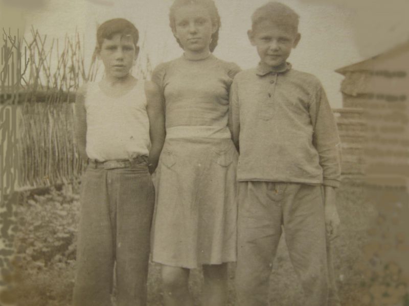 | Автор воспоминаний вместе с двоюродными сестрой и братом, 1946г. |