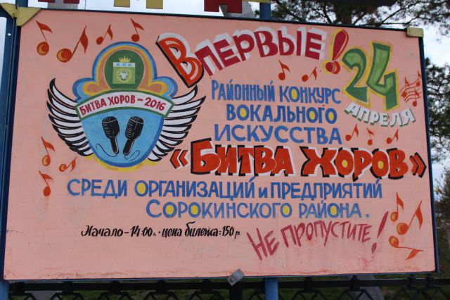 Со словами поздравления и приветствия депутат ГД РФ в этот же день обратился к участникам районного конкурса «Битвы хоров». Он пожелал победы сильнейшим, а всем сорокинцам в полном здравии встретить первомайские праздники. Успел послушать нескольких участников конкурса и ответить на вопросы журналистов. Его интервью прозвучит в одной из передач «Радио Сорокино», а также будет напечатано в газете и на официальном сайте Сорокинского района.