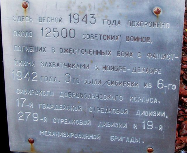 Здесь погибли воины-сибиряки в ходе стратегической операции «Марс» в 1942 году, проведенной советским командованием для ликвидации Ржевского выступа. Это единственное воинское захоронение, где покоятся останки солдат из всех регионов Западной Сибири.