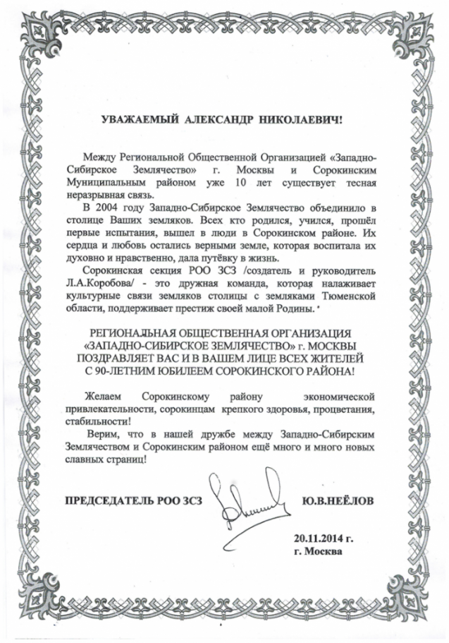 Верим, что в нашей дружбе между землячеством и Сорокинским районом еще много славных страниц!