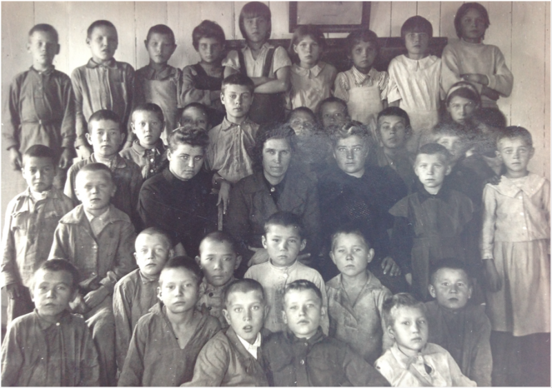 В школе проходила своя жизнь. Мы с сестрой участвовали в самодеятельности, очень активно шили костюмы из старого тряпья и бумаги, красили в разные цвета. Надя училась во втором классе, а я – в пятом. Готовили посылки на фронт: кисеты, рисунки, письма. Школа работала в 2 смены, и классы были совмещены, например, вместе учились 2 и 4 класс. Классом ходили собирать колоски, картошку и так далее.