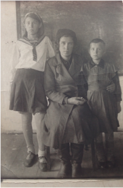 Разница в возрасте у нас с сестрой была 5 лет, но все происходило вместе. Мы не очень понимали, что такое война, но в наших детских душах жила тревога. Немецкие самолеты долетали до Казани и несколько раз бомбили. Окна были заклеены полосками бумаги крест-накрест, и наглухо занавешивались. Когда начинала вопить сирена, становилось жутко. Брат Владимир учился в Казанском авиационном техникуме и остался там. А мы переехали под Куйбышев, в деревню Красная Слобода. А затем в Челябинск, в Муслюмовское подсобное хозяйство Кировского танкового завода. Было много эвакуированных. Была картошка, морковь, свекла. Был молокозавод, где мы получали ацидофилин. Я, как старшая (мне было 12-13 лет), вела хозяйство: колола дрова, носила воду, готовила еду, а мама была на работе. - Тогда работали в две смены с одним выходным. В Муслюмове было замечательное озеро - чистейшее (сейчас отравлено радиацией). Помню, как мы с сестрой смотрим в окно, а по белоснежному полотну озера тянется серая лента, как огромная, бесконечная змея – это гнали пленных. Длинные серые шинели, понурые фигуры. Это было незабываемое впечатление…