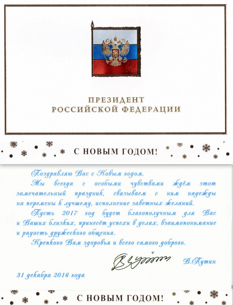 Президент России Владимир Путин направил в адрес Ассоциации коренных малочисленных народов Севера, Сибири и Дальнего Востока РФ, в которой представлены наши земляки и члены Западно-Сибирского землячества в Москве, поздравление с Новым годом.