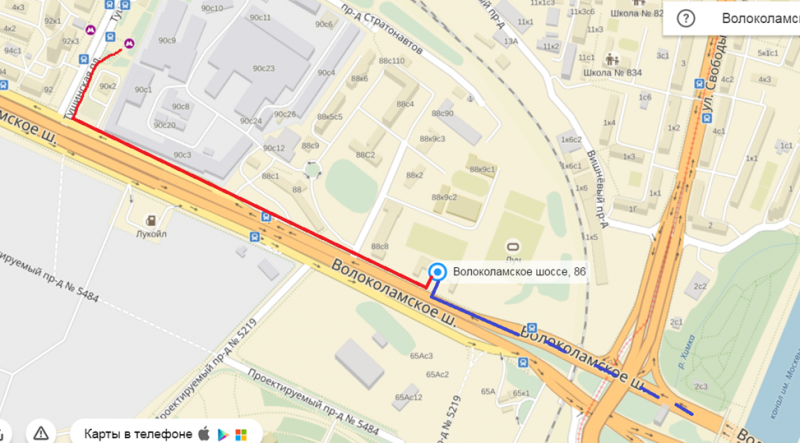 Со стороны МКАД - съезд с кольцевой автодороги на Волоколамское шоссе в сторону Центра - доехать до улицы Свободы (большая эстакада) - развернуться в обратную сторону - вернуться по Волоколамскому шоссе до красного кирпичного здания - заехать в ворота. Центральный вход (белое стеклянное крыльцо).