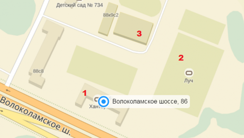 1 – Клуб «Хантер» (место сбора). 2 – Стадион «Луч» (место проведения футбольного матча). 3 – Раздевалка для футболистов. |