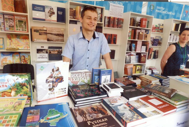 Люди начали разбирать развал. “Книга Сибири” или “Сибирская библия” уехала в Калининград, в научную библиотеку, “Последний в очереди за поцелуем” достался вот этим симпатичным ребятам – Антону и Екатерине. “Книгу Севера” получил Виталий Швецов…