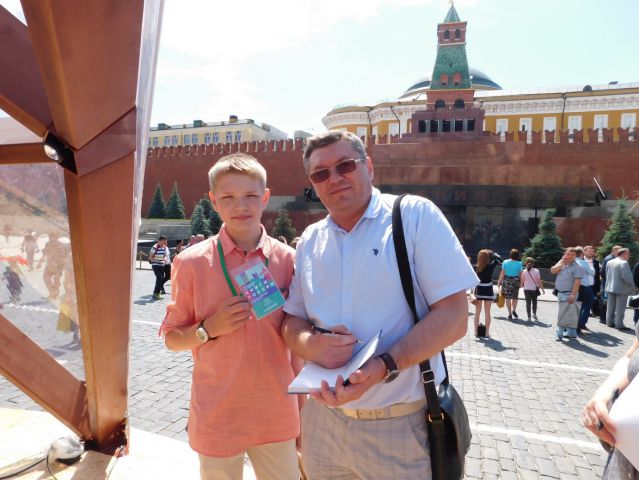 Боже мой! У меня дыхание перехватило. Вот этот красивый статный мужчина, известный писатель, депутат Тюменской областной Думы с моими сыночками в одной песочнице играл! Такая счастливая встреча! Сергей Сергеевич приехал с сыном, симпатичным и скромным юношей, который, чувствовалось, гордился отцом и был рад его выступлению у стен Кремля. Да и как не гордиться!