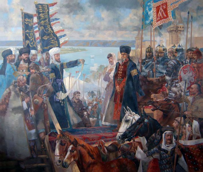 Немного истории. Первое упоминание о булгарах (то есть живущих на Волге) относится к 922 году, когда здесь был принят ислам. Но само поселение появилось гораздо раньше, во времена палеолита – 100 тысяч лет назад. Как первое феодальное государство, Волжская Булгария возникла в 9 веке и длительное время являлась единственно развитой на крайнем востоке Европы. Самым крупным ее городом был Булгар, превосходивший по площади Лондон, Париж, Киев, Новгород того времени. Столица застраивалась кирпичными и каменными зданиями, а еще здесь был водопровод. До наших дней сохранились Черные палаты, Ханская усыпальница, Соборная мечеть. Город торговал с Византией, Испанией, Китаем, Русью мехом, кожей, оружием, ювелирными и гончарными изделиями. Здесь были школы, свои поэты и ученые. Характерными элементами Булгарской бытовой культуры были изделия из золота, серебра, одежда, расшитая бисером, чеканились монеты. Сюда приезжали торговцы и купцы, как на ежегодную Всемирную ярмарку. Многие иностранцы имели здесь свои слободы и улицы.