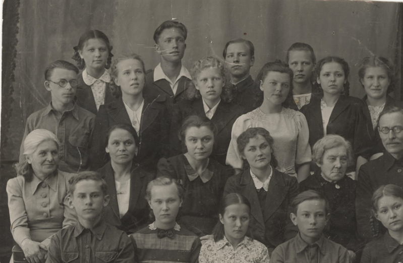 | 8«а» Тобольской школы №1, 1945г. В третьем ряду вторая слева Вера Кубочкина |