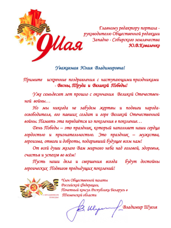 Пусть наши дела и свершения всегда будут достойны героических подвигов предыдущих поколений!