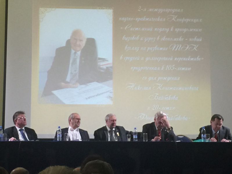 21 марта 2016г. по инициативе международного Фонда инноваций имени Н.К.Байбакова, Союза нефтегазопромышленников, друзей, соратников и членов землячества в Москве была проведена 2-я Международная научно-практическая конференция «Системный подход к преодолению вызовов и угроз в экономике – новый взгляд на развитие ТЭК в средней и долгосрочной перспективе».