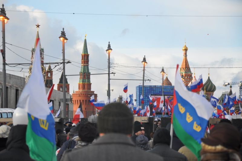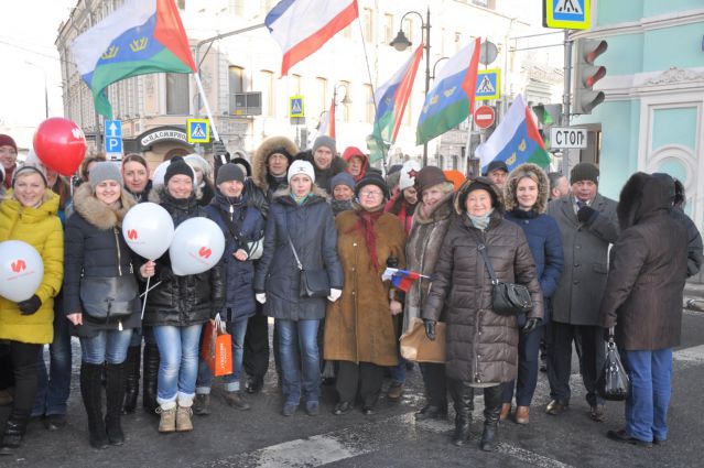 Тюменское представительство в Москве пригласило нас, сибиряков, членов клуба «Гармония», принять 18 марта участие в митинге, посвященном второй годовщине воссоединения Крыма с Россией. И под лозунгом «Крым – Тюмень с тобой!» мы влились в колонну демонстрантов, торжественно шествующих на Васильевский спуск.