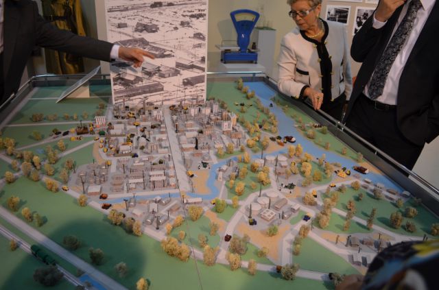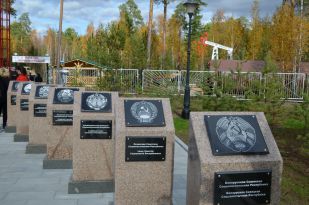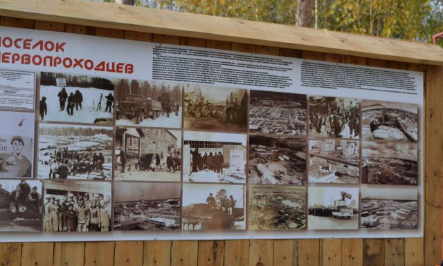 Через ворота "Спасской башни" по мосточку, который многим напоминал мостик через небольшую протоку, некогда соединявший поселки ДСУ-6 и автобазы №2, посетители попадают в поселок Первопроходцев. Здесь представлена атрибутика жизни и работы покорителей Севера. На постаментах застыли образцы спецтехники времен начала освоения Западной Сибири. Здесь же установлены "качалка", с помощью которой добывали нефть, и металлическая бочка - жилое помещение, в которой проживали первопроходцы. Убранство в бочке точно соответствует периоду 60-70-х годов. Увиденное никого не оставило равнодушным: всюду слышны были возгласы восхищения и одобрения.