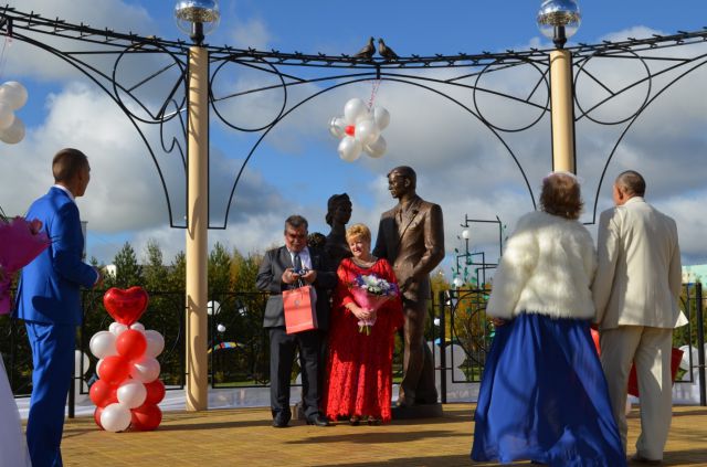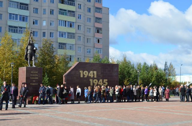 Праздник начался с возложения цветов к обелискам в Сквере Памяти. По старой традиции на это мероприятие приезжают губернатор Ханты-Мансийского автономного округа - Югры Наталья Комарова и президент ПАО "ЛУКОЙЛ" Вагит Алекперов. В возложении цветов участвуют ветераны Великой Отечественной войны, школьники, молодежь. Затем все направились на торжественное открытие Сквера молодоженов. Несмотря на свежий северный ветер, здесь развернулось театрализованное представление бала молодоженов, которое завершилось открытием им памятника.