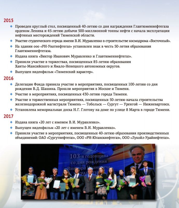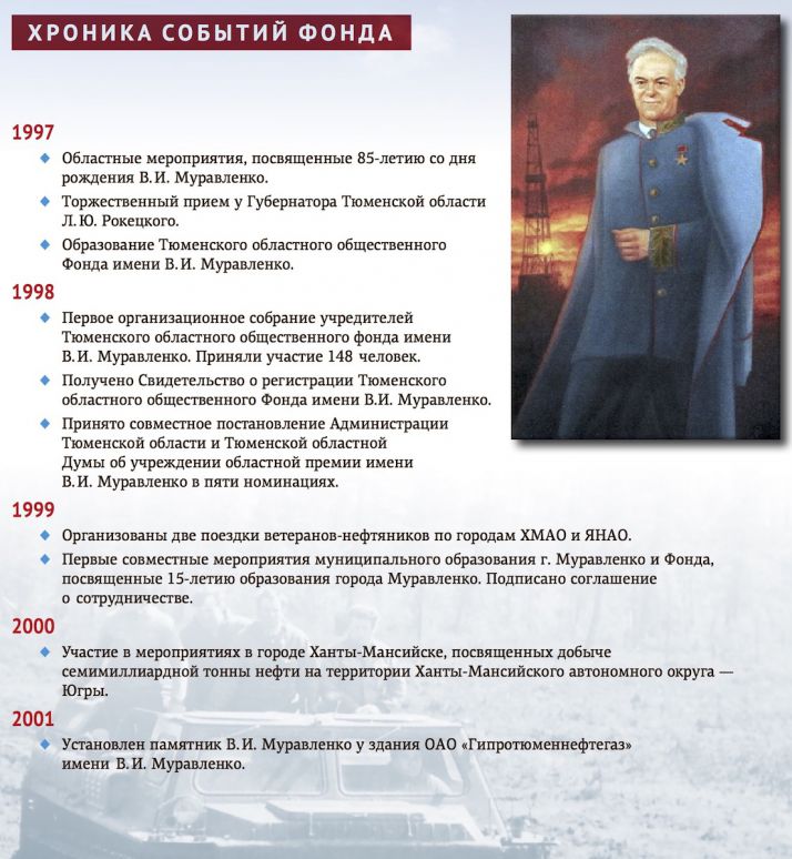 25 декабря 2017г. исполнится 20 лет со дня образования Тюменского областного общественного Фонда имени В.И.Муравленко и 105 лет со дня рождения Виктора Ивановича Муравленко – первого начальника Главтюменнефтегаза, Героя Социалистического Труда, Лауреата Ленинской и Государственной премий, премии Совета Министров СССР. Под его руководством осваивали Западную Сибирь многие члены Западно-Сибирского землячества – первопроходцы тюменского Севера. На нашем портале стартовала серия публикаций, посвященных двум датам.