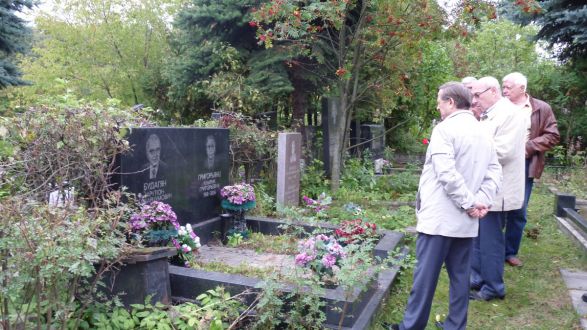 Возложили красные гвоздики к надгробным памятникам Георгию Альбертовичу Арендту, Владимиру Пантелеевичу Пивоварову, Петру Ивановичу Кузину, Валерию Анисимовичу Хорошеву, Леонарду Григорьевичу Ширяевскому, Юлию Васильевичу Андрейчеву, Арутюну Амбарцумовичу Будагяну, Илье Павловичу Варшавскому.